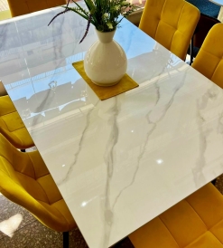 Juego Mesa Fija Neolith 1.40 x 0.80 + 6 Sillas Venecia Pana Mustard