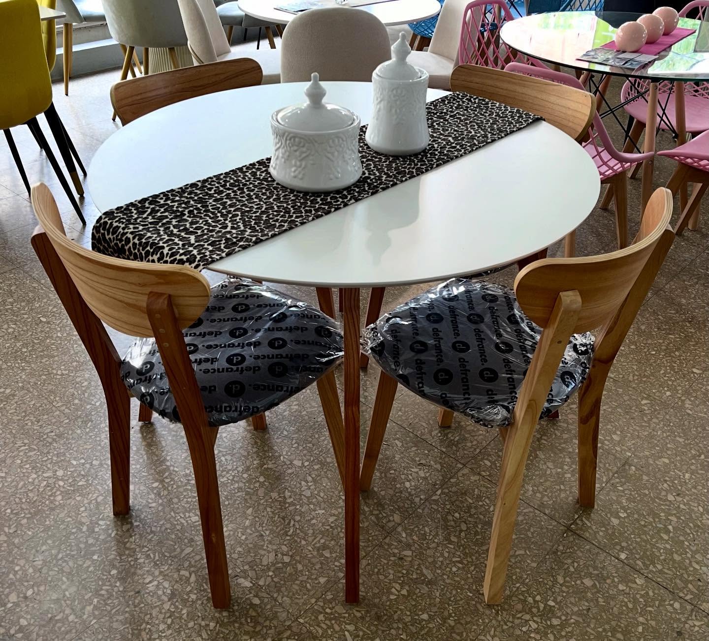 Juego de Mesa Nórdica 1.10 diam. tapa melamina blanca, patas de paraíso.