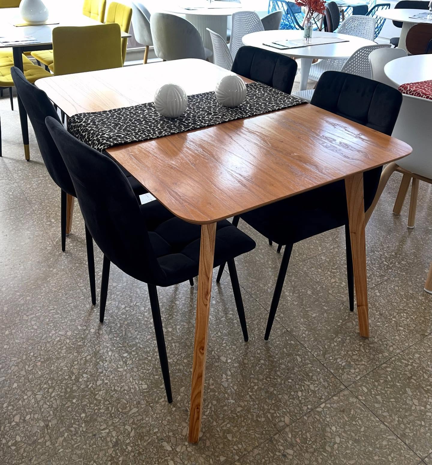Juego de Mesa Nórdica 1.30 x 0.90, tapa paraíso, patas de paraíso.