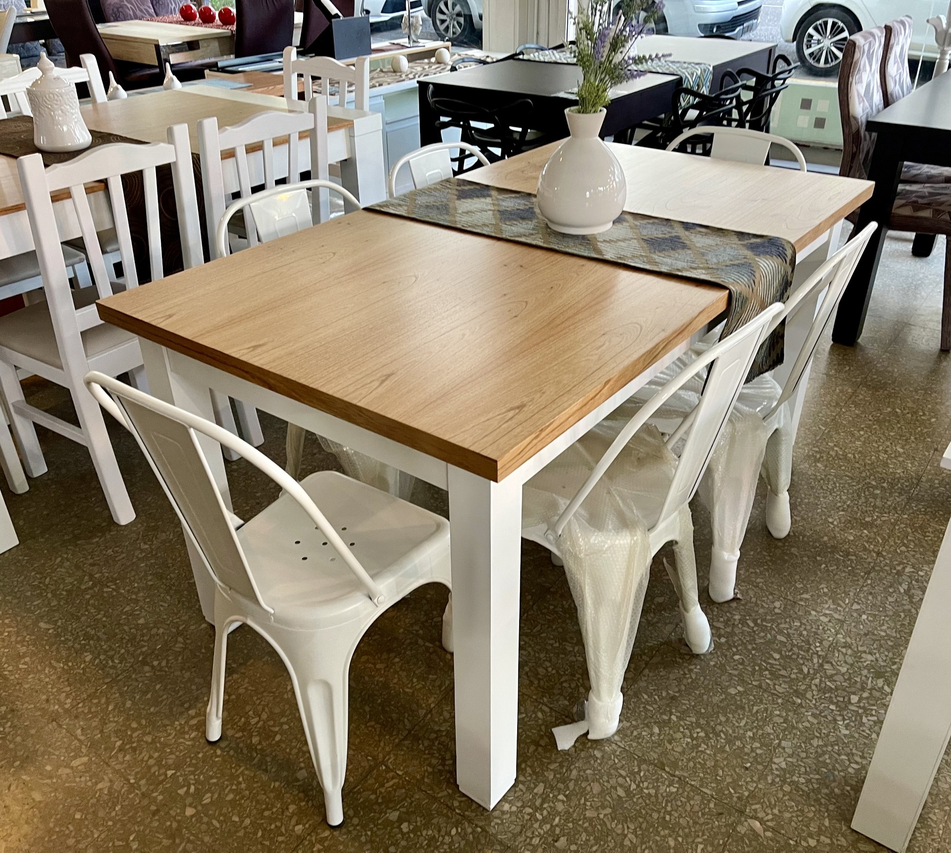Juego de Mesa Trend 1.60 x 0.90 tapa paraíso, base paraíso laqueada blanco.