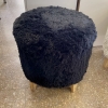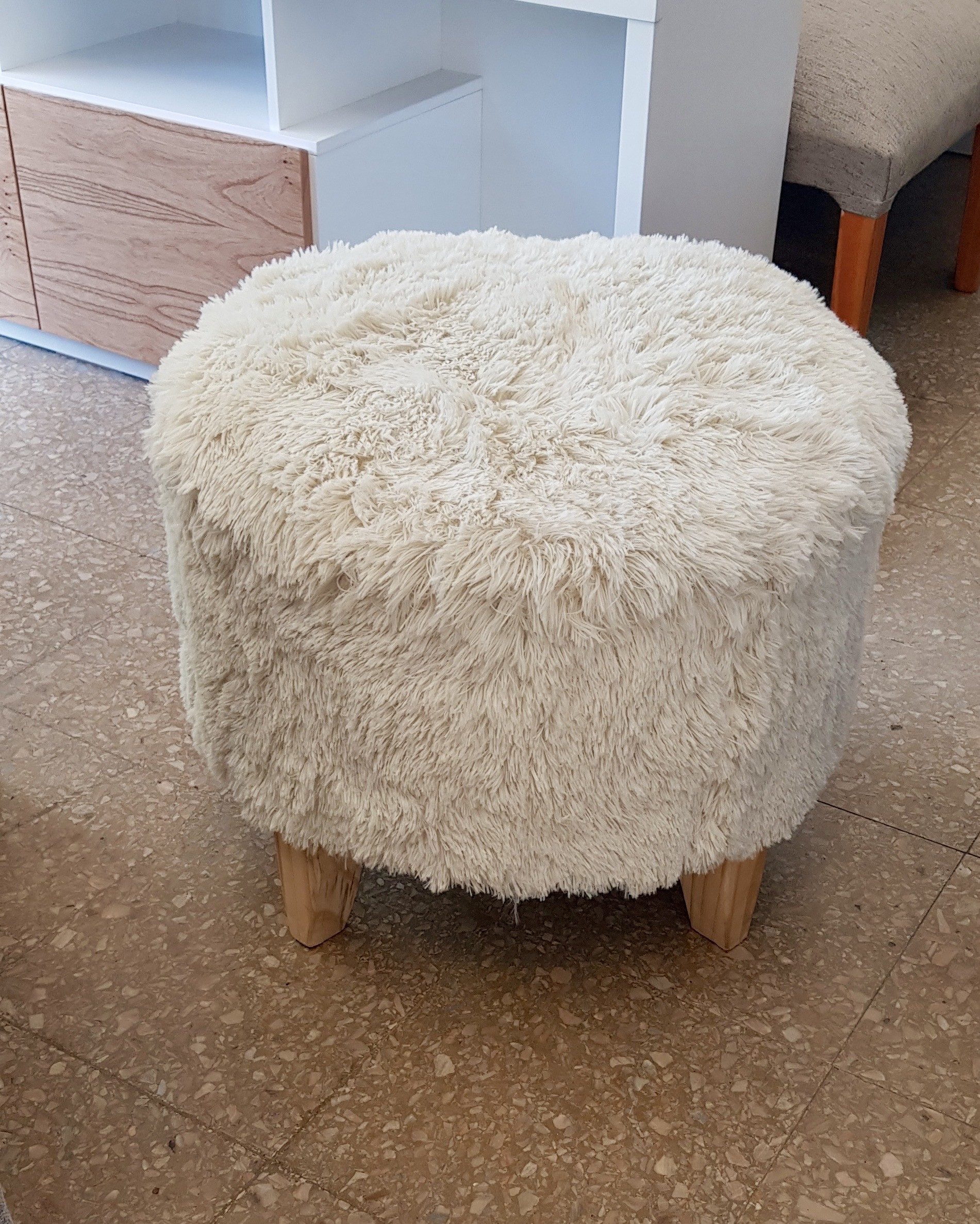 Puff redondo con patas de madera, confeccionado en peluche pelo soft.