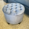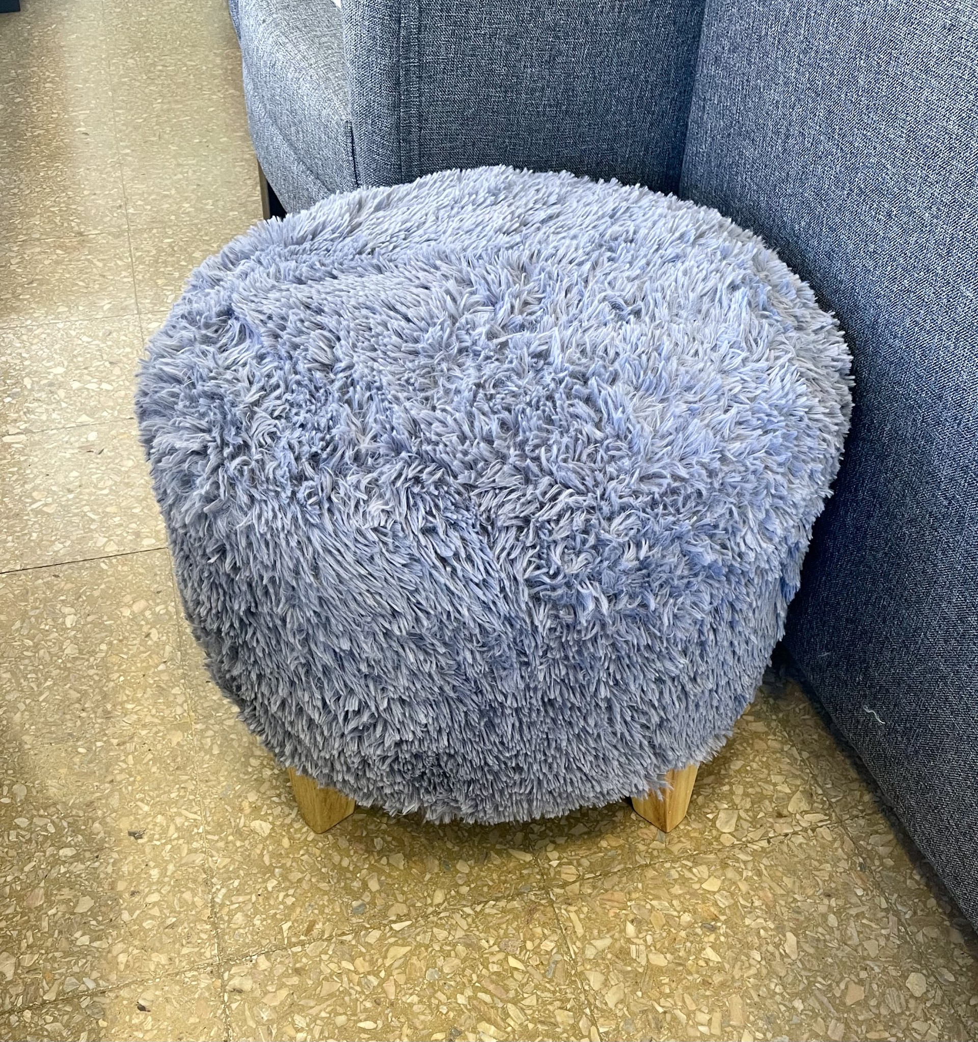 Puff redondo con patas de madera, confeccionado en peluche pelo soft.