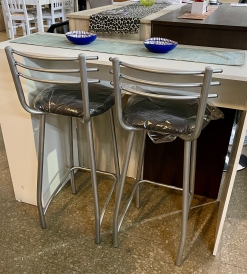 Juego Desayunador Melamina Blanca con Estantes + 2 Banquetas 1020 Caño Gris
