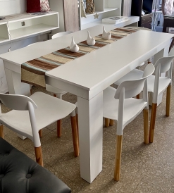 Juego Mesa Melamina Blanca 1.40 x 0.90 + 6 Sillas Milano Blancas