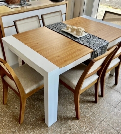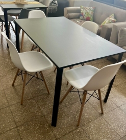 Juego Mesa Milano Negra 1.30 x 0.85 + 4 Sillas Eames Blancas
