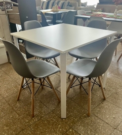 Juego Mesa Milano Blanca 0.85 x 0.85 + 4 Sillas Eames Grises