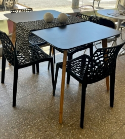 Juego Mesa Milano Negra 0.85 x 0.85 + 4 Sillas Mikonos Negras