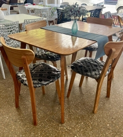 Juego Mesa Nórdica Negra 1.30 x 0.80 + 4 Sillas Retro Paraíso Pana Gris
