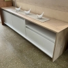 Bahiut Niza con 3 puertas de abrir con estante interior, confeccionado en melamina blanca combinada con roble bardolino.