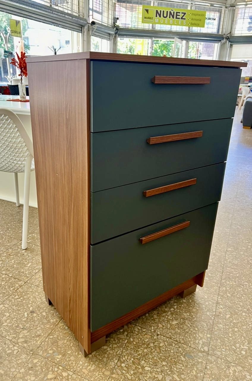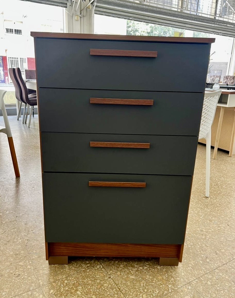 Chiffonier Aruba con 3 cajones y botinero, correderas telescópicas, confeccionado en mdf uv laqueado gris/jatoba.