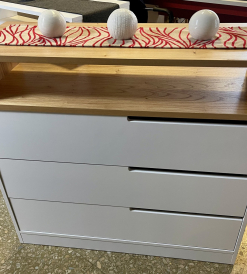 Cómoda Gala con 3 cajones, correderas metálicas, confeccionada en mdf laqueada blanca combinada con paraíso.