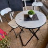 Set Negro de Mesa cuadrada 0.80 x 0.80 + 4 sillas con apoyabrazos apilables, estructura de polipropileno reforzado simil ratán, facil de limpiar, liviano para trasladar, se puede usar en patios, balcones, galerías o terrazas.