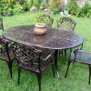 Juego de mesa chateau cuadrada 1.00 x 1.00 + 4 sillones chateau en color Negro, estructura de fundición de aluminio, liviano para trasladar, se puede usar en patios, balcones, galerías o terrazas, pintado epoxi, no oxida el piso si se moja.