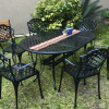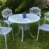 Juego de mesa chateau redonda 1.00 diam. + 4 sillones chateau en color Negro, estructura de fundición de aluminio, liviano para trasladar, se puede usar en patios, balcones, galerías o terrazas, pintado epoxi, no oxida el piso si se moja.