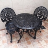 Set de mesa redonda Madrid 0.65 diam. + 2 sillas Garden color Patinado Peltre, estructura de fundición de aluminio, liviano para trasladar, se puede usar en patios, balcones, galerías o terrazas, pintado epoxi, no oxida el piso si se moja.