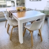 Juego de Mesa Eames 0.90 diam. tapa de vidrio, importada, patas de madera haya.