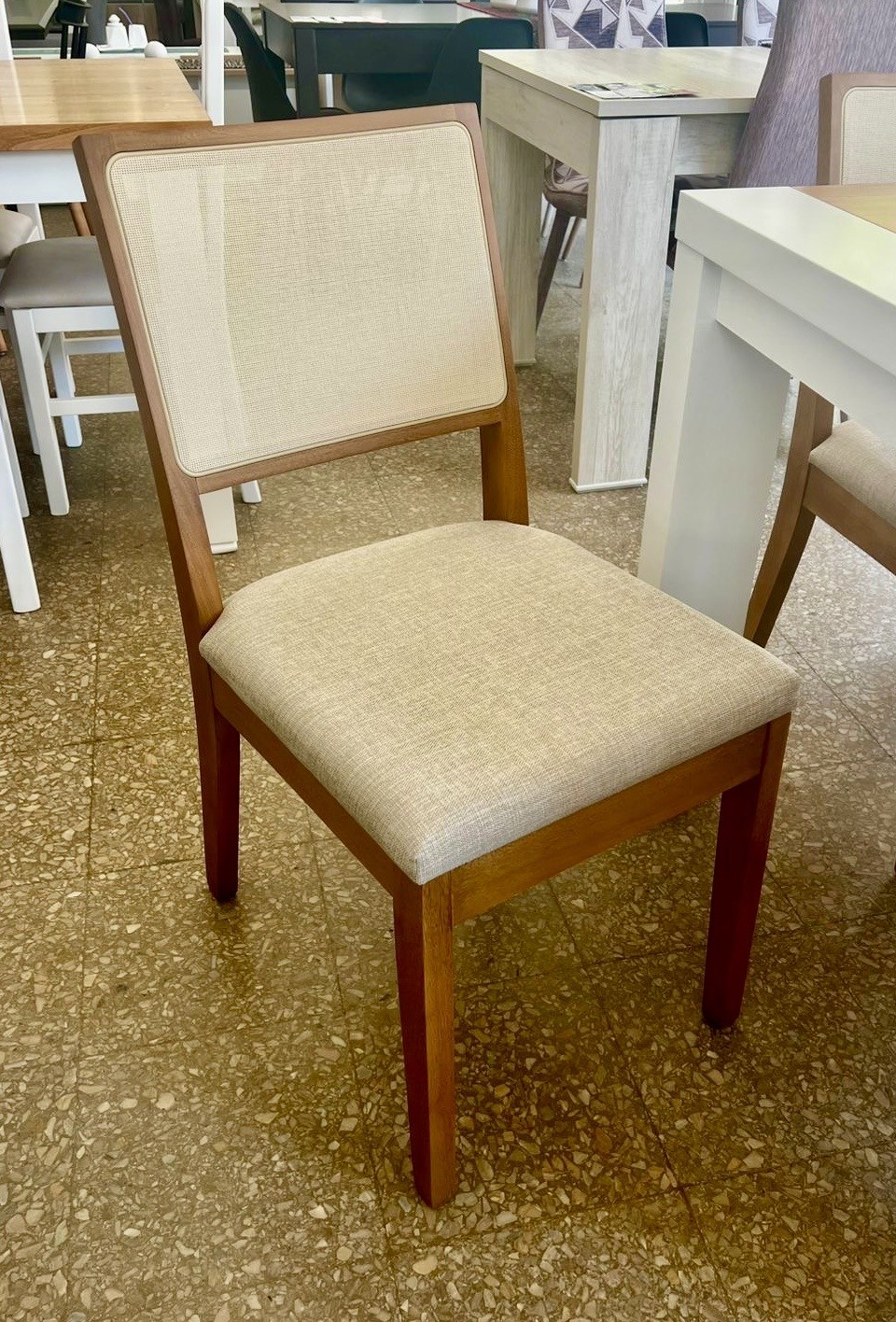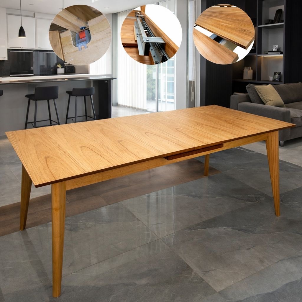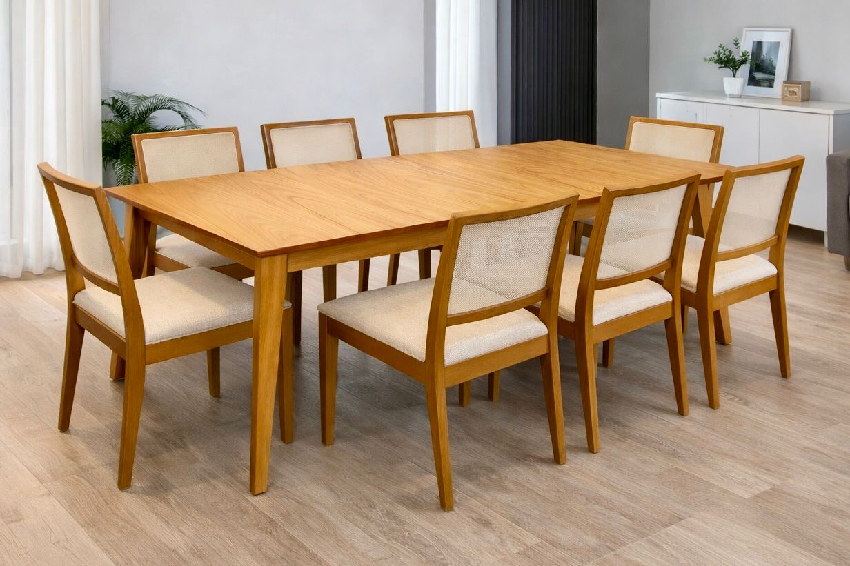 Juego Mesa Extensible Automática Luxury 1.80 x 0.90 a 2.20 + 8 Sillas Bali Lino Sepia