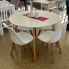 Juego de Mesa Nórdica 0.85 diam. tapa melamina blanca, patas de paraíso.