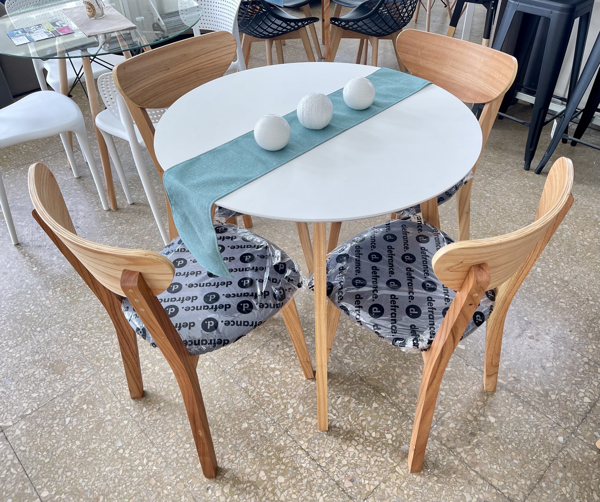 Juego Mesa Nórdica 0.85 diam. + 4 Sillas Retro Paraíso Pana Gris
