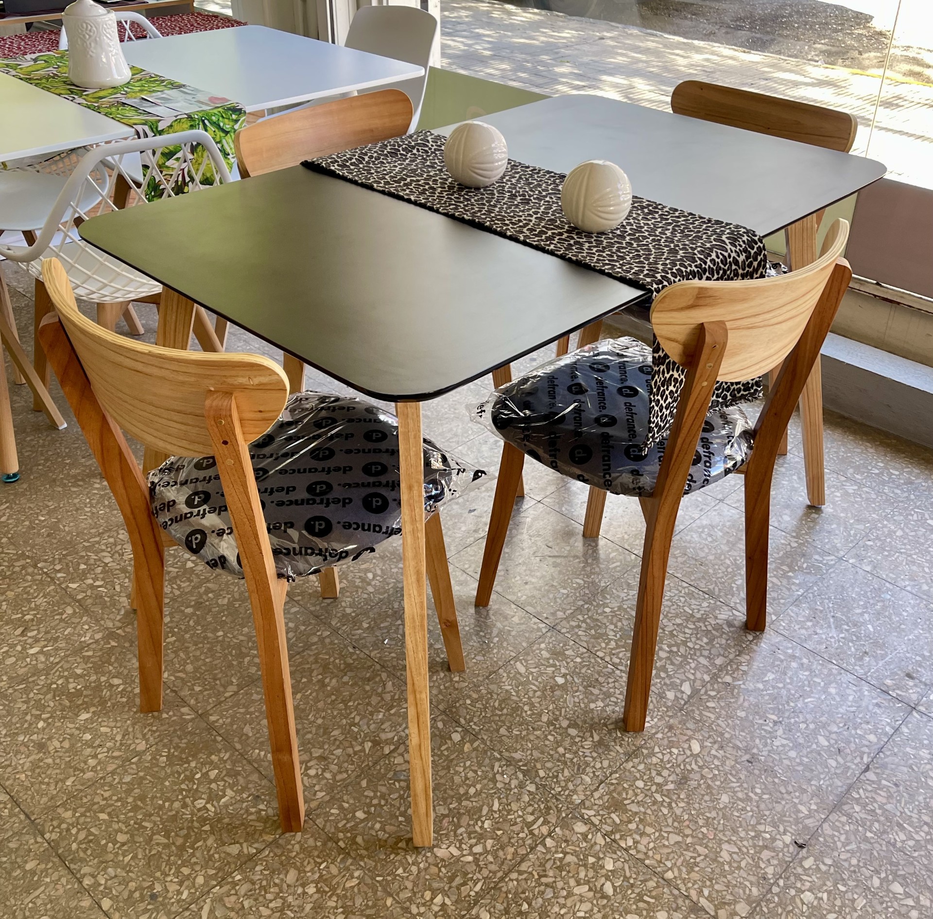 Juego Mesa Nórdica Negra 1.30 x 0.80 + 4 Sillas Retro Paraíso Pana Gris