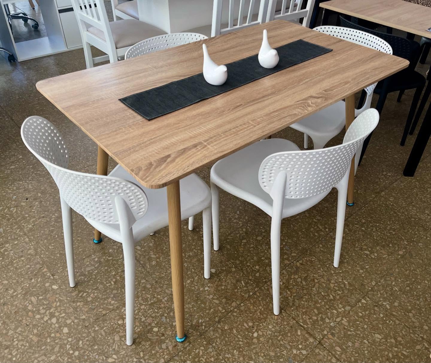 Juego Mesa Capri Melamina Helsinki 1.40 x 0.90 + 4 Sillas Bari Pana Estampada Geometria