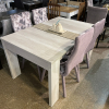 + 6 sillas Varenna en stock tapizadas en pana estampada hojas gris.