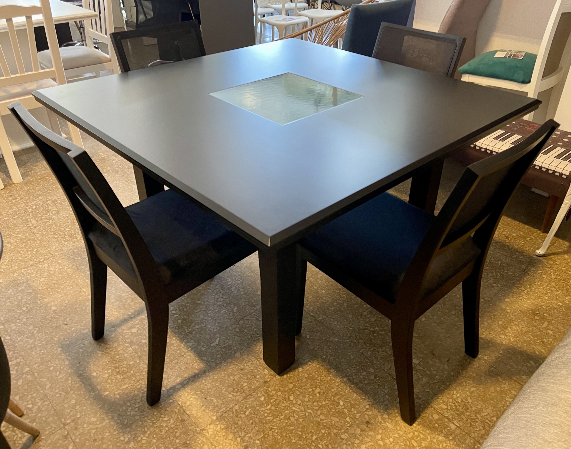 Juego de Mesa Trend 1.30 x 1.30, detalle de vidrio en la tapa, estructura paraíso laqueada negro.