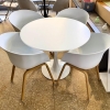 Juego de Mesa Tulip 0.90 diam. base central en metal mate con forma de pedestal, importada, laqueada blanca.