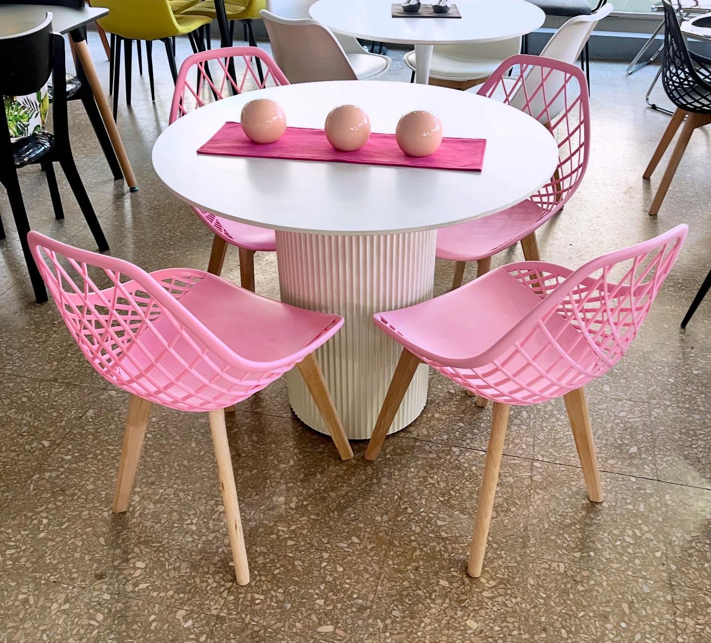Juego Mesa Circle Blanca 0.90 diam. + 4 Sillas Nova Tulip Rosas