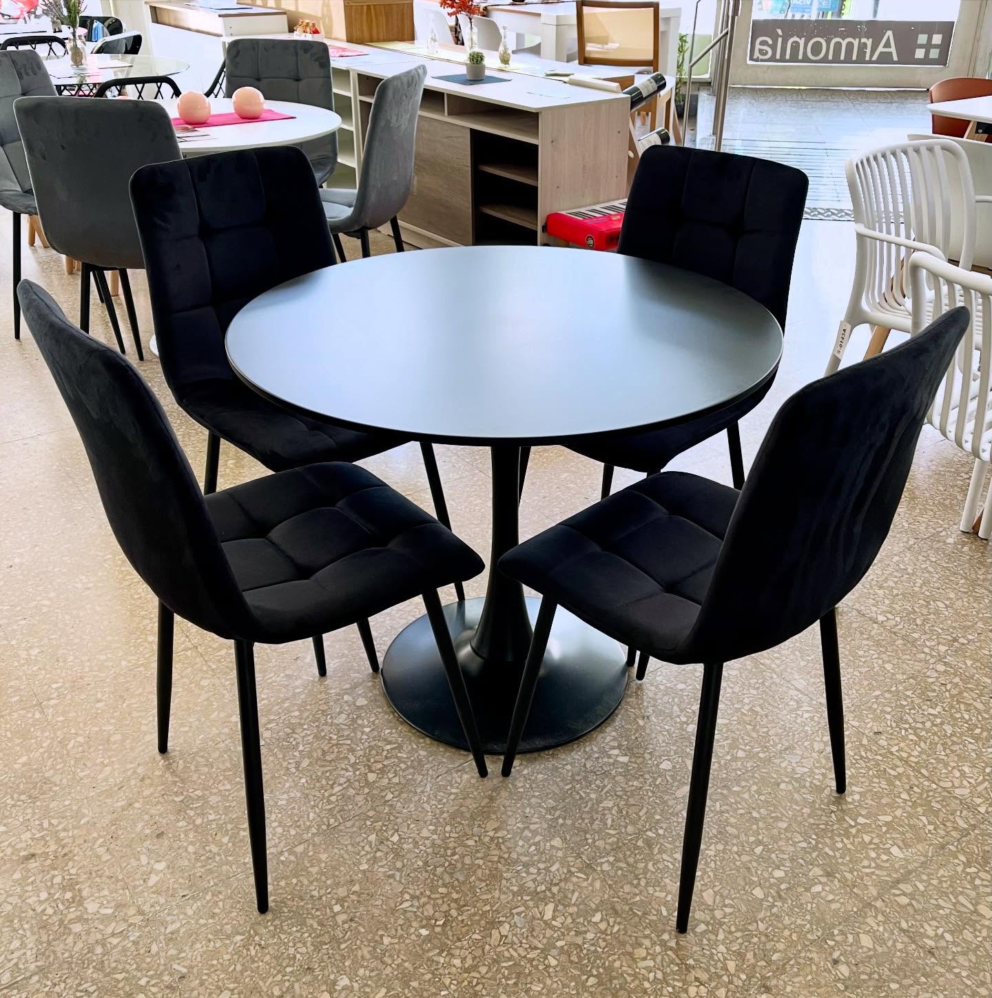 + 4 Sillas Venecia tapizadas en pana negra.