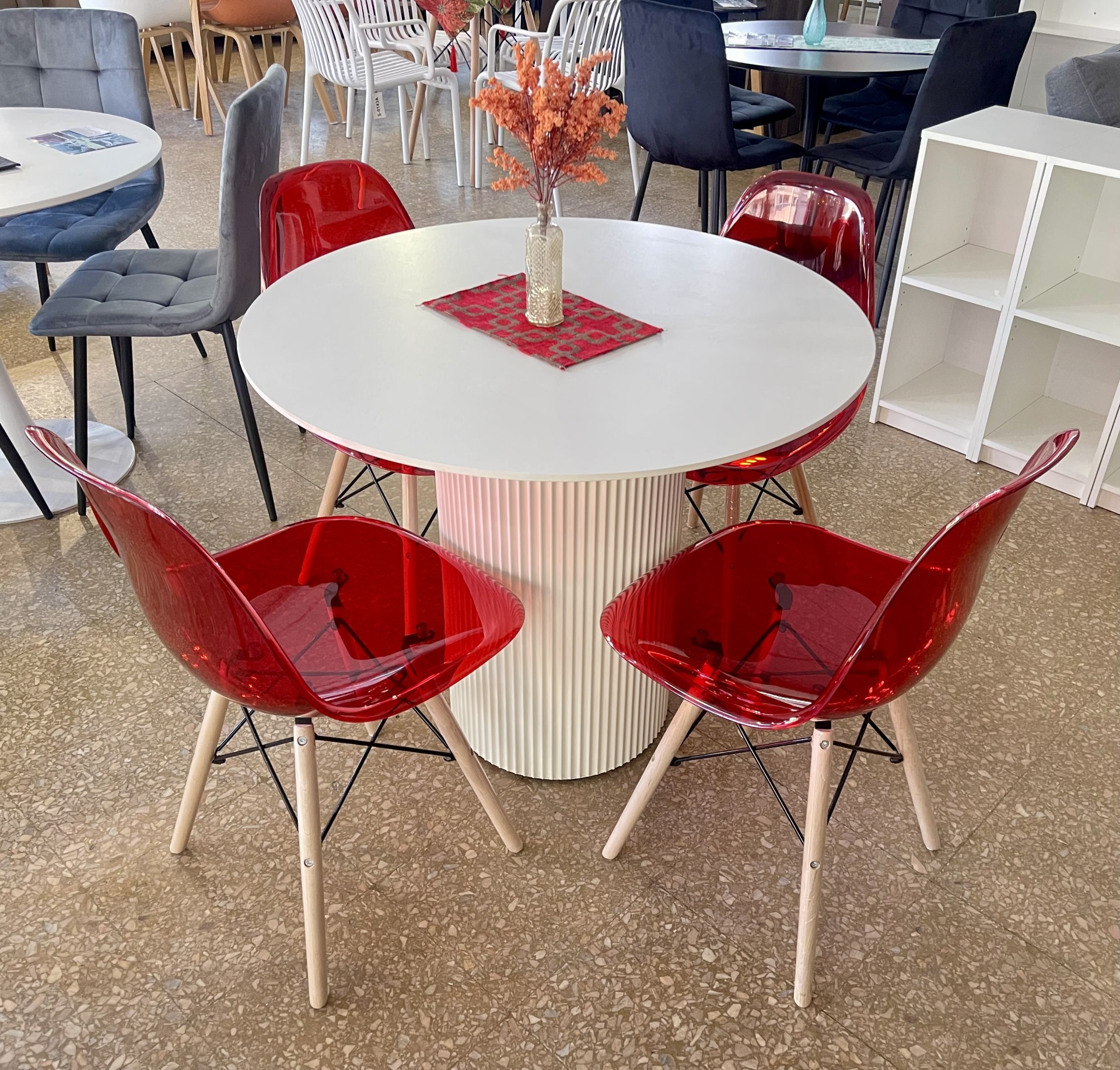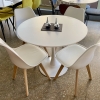 Mesa Circle 0.90 diam. base central en metal ranurado laqueado, importada, tapa de material sintetizado símil piedra blanca.