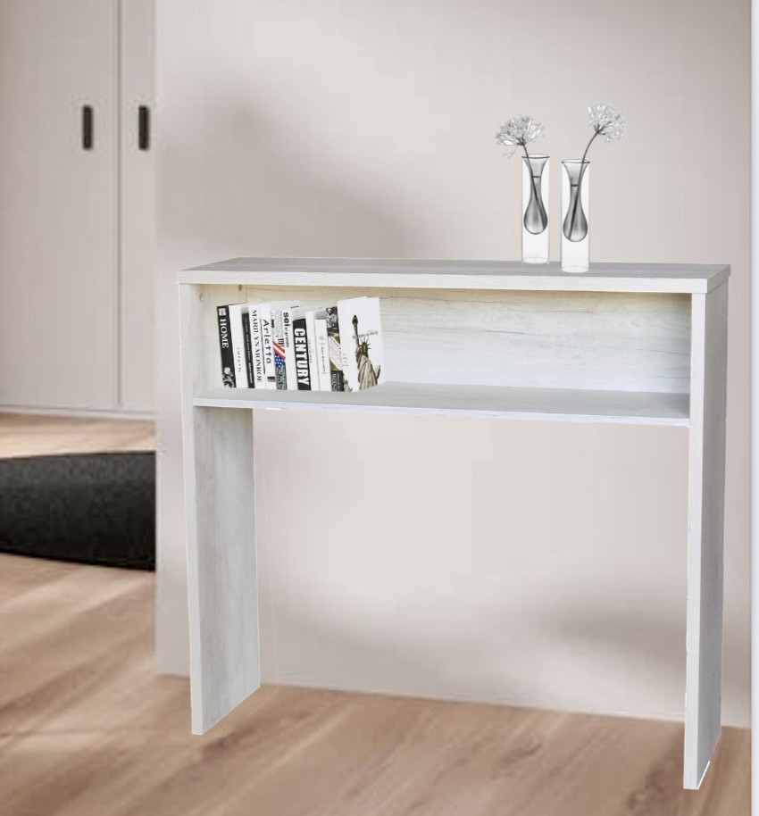 Mesa de Arrime Esenzia con estante, confeccionada en melamina helsinki.
