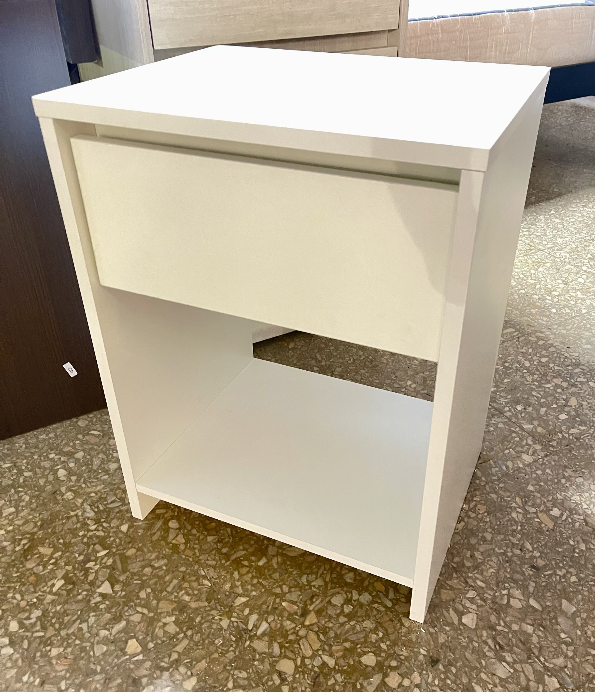 Mesa de Luz Niza con 1 cajón, confeccionada en melamina blanca.
