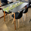 Mesa Eames 0.90 diam. tapa de vidrio, importada, patas de madera.
