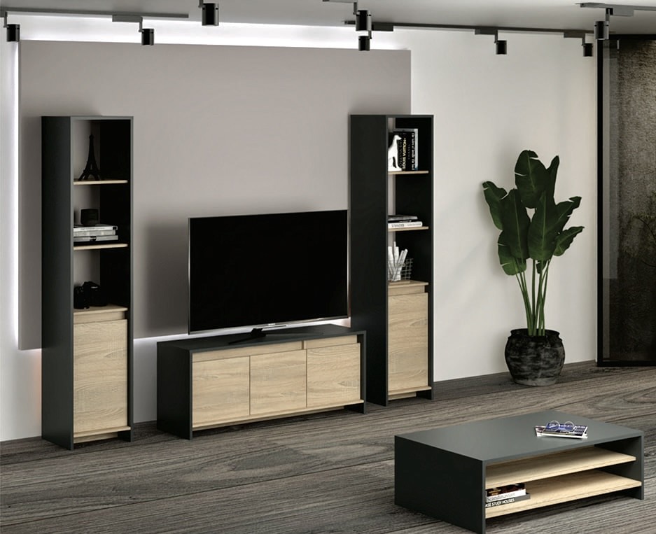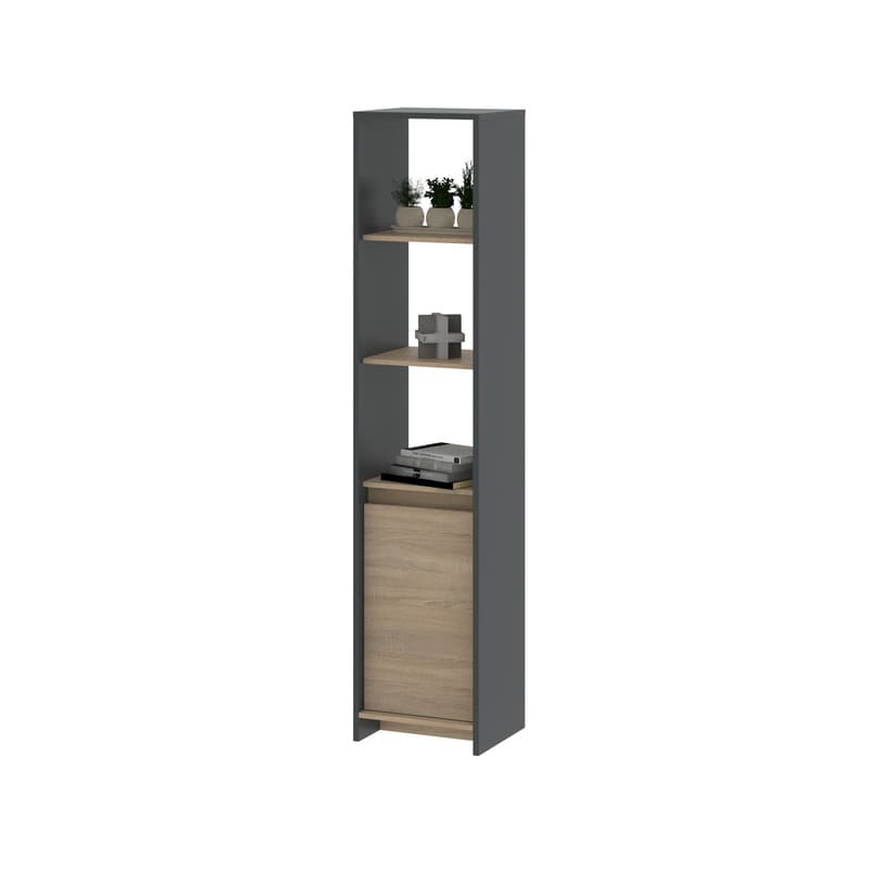 Módulo Niza con 1 puerta de abrir, confeccionado en melamina gris combinado con roble bardolino.