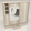 Placard con 2 puertas corredizas las 2 con Espejo, al costado 2 mini puertas de abrir con estantes interiores, manijones de aluminio, con 3 cajones externos uno de ellos con llave, con correderas metálicas, estantes y barral para colgar, confeccionado en melamina helsinki.