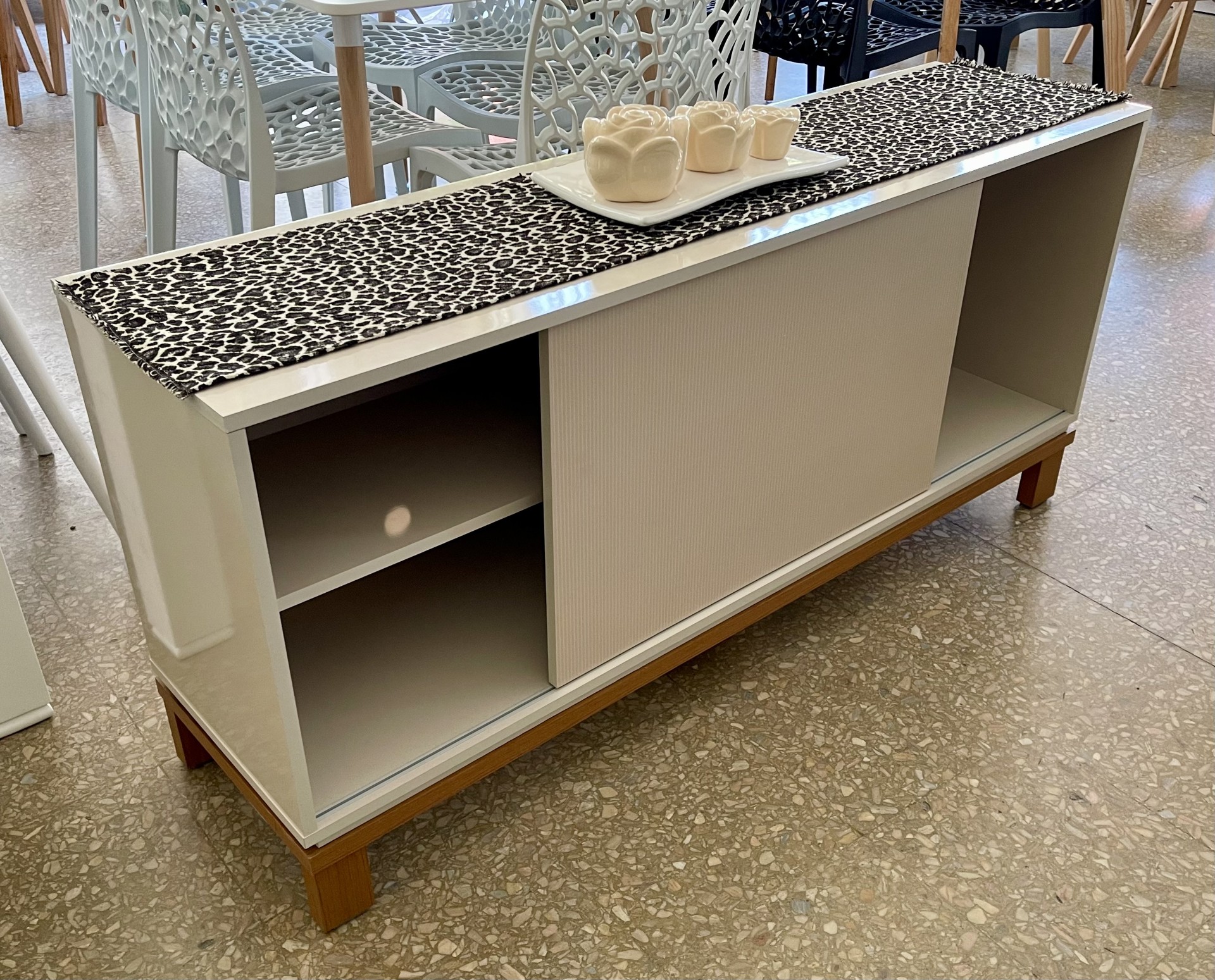 Rack Forest con 1 puerta corrediza con estante interior, confeccionado en Laqueado uv off whitte.