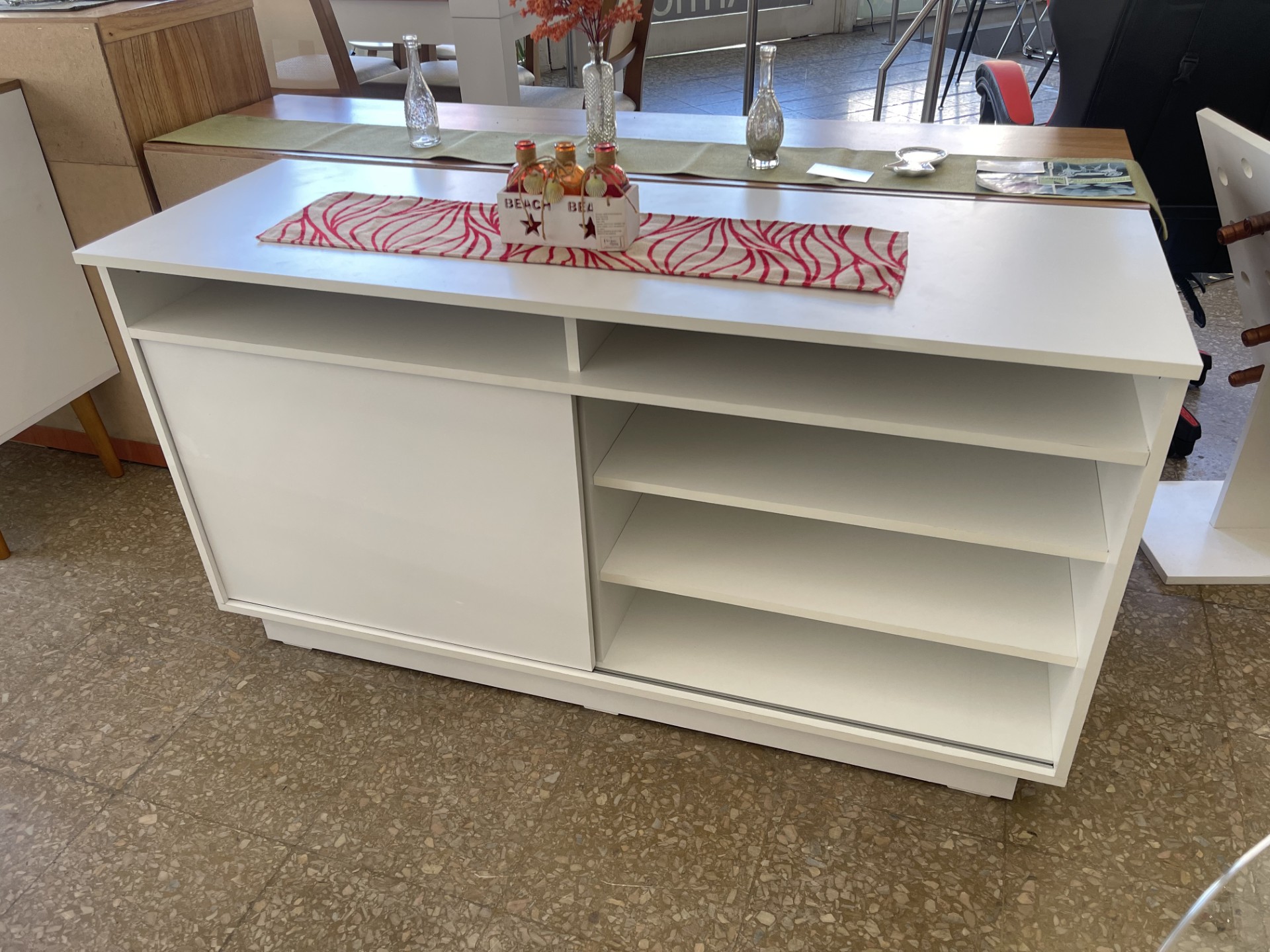 Rack Garden con 1 puerta corrediza con estante interior, confeccionado en melamina blanca.