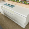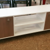 Rack Niza con 3 puertas de abrir con estante interior, confeccionado en melamina gris combinada con roble bardolino.