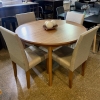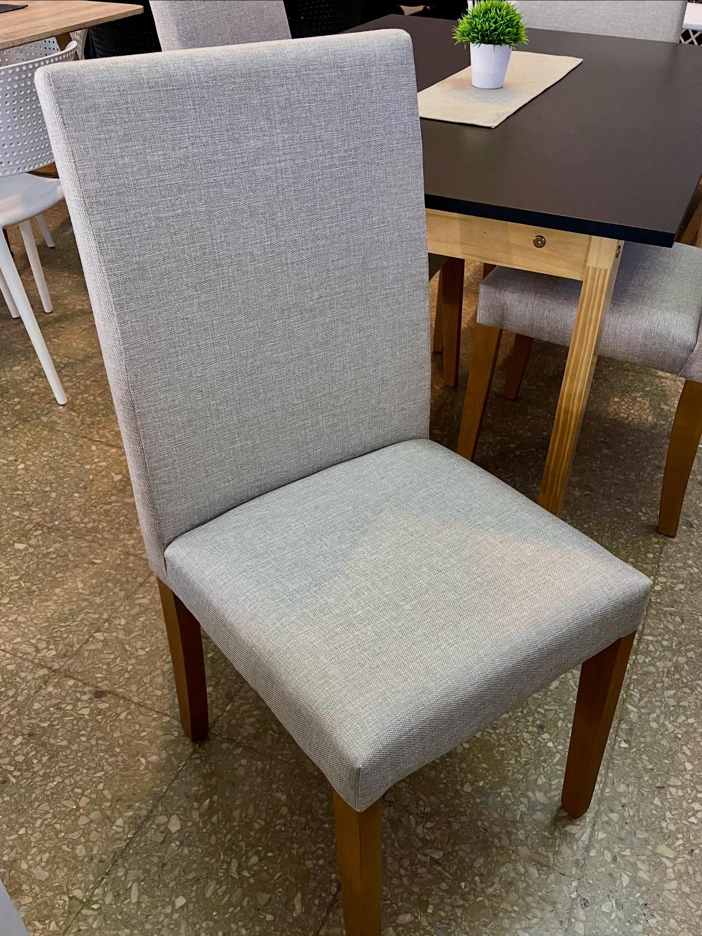Silla Bali, estructura de grandis, respaldo y asiento acolchado tapizado, tapizadas en Lino sepia, lustre natural.