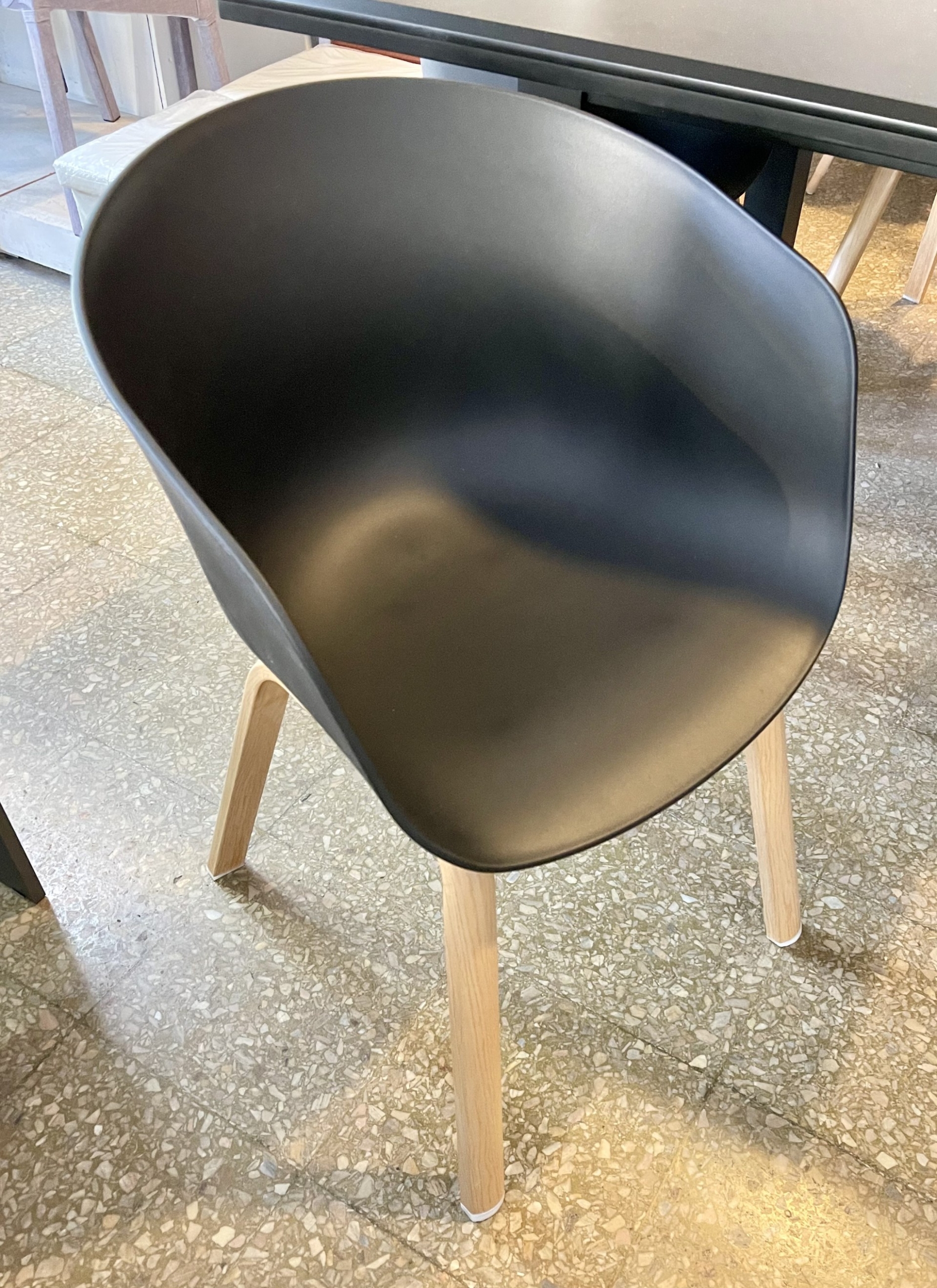 Sillón Nova Wave, importado, casco de polipropileno reforzado Negro, patas metálicas revestidas madera.