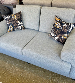 Sofá confeccionado con espuma de alta densidad, almohadones desmontables del respaldo y asiento en placa, doble costura, patas plásticas reforzadas, detalles apoyabrazos en c.
