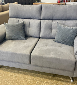 Sofá confeccionado con espuma de alta densidad, detalles de doble costura en respaldo y asientos, respaldo alto no desmontable y almohadones laterales mullidos desmontables, patas cromadas, asientos deslizables no desmontables.
