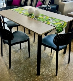 Juego Desayunador Melamina Canyon con Bodega + 2 Banquetas Ibiza Cromadas